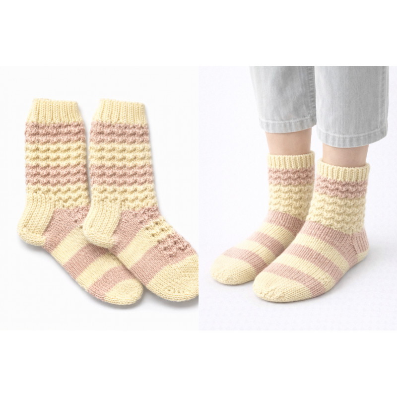 Nämä käsin kudotut villasukat on valmistettu aidosta villalangasta, ja niiden koristeellinen kuvio kertoo tekijän taidosta ja huolellisuudesta. Pehmeät, hengittävät ja kestävät sukat sopivat sekä arkeen että lahjaksi – lämmin pala suomalaista käsityötä jokaiseen päivään.