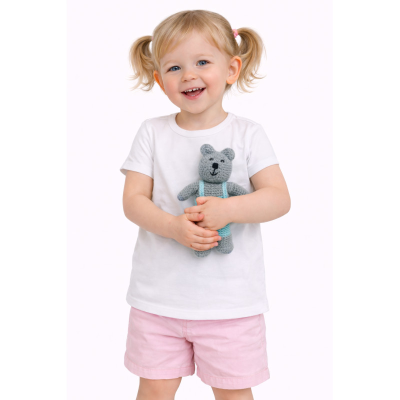Nalle turkooseilla housuilla.