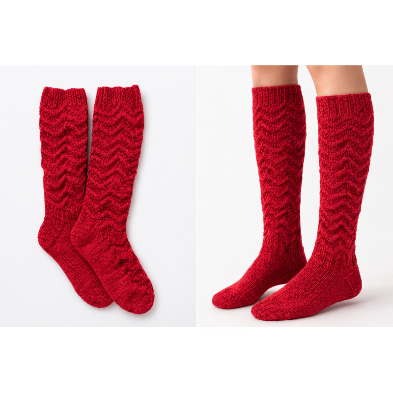Sukat on suunniteltu kestämään arjen haasteet ja tarjoamaan lämpöä kylminä päivinä. Kuviointi tuo sukkiin persoonallisen ilmeen, ja käsintehty laatu takaa yksilöllisyyden.
