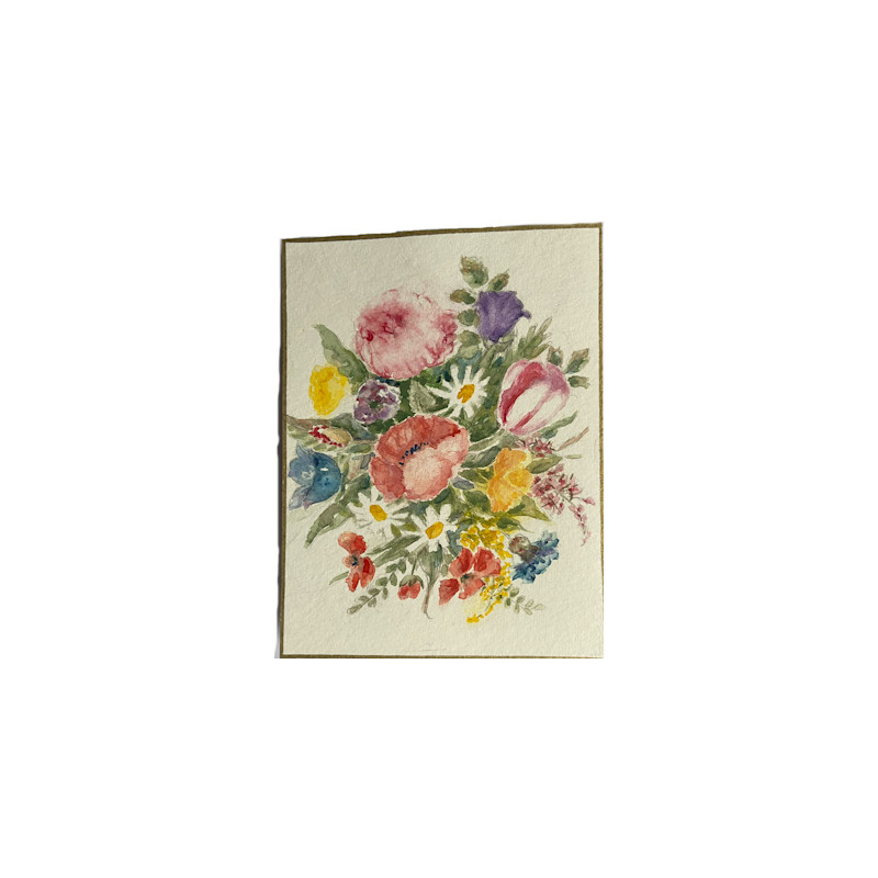 Käsin maalattu kortti – perinteinen kukkakimppu