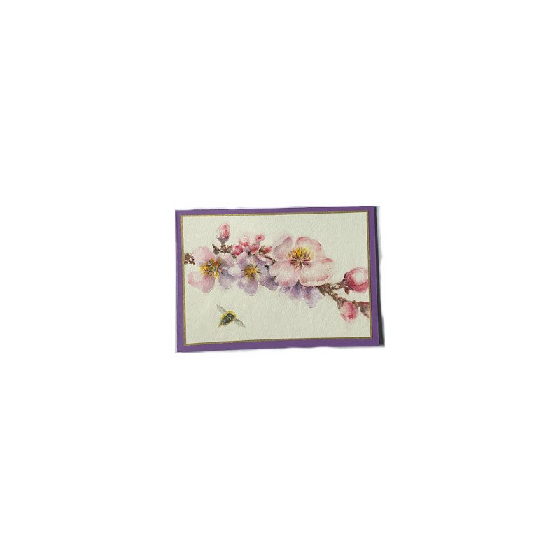 Käsin maalattu kortti – kukkiva oksa ja mehiläinen