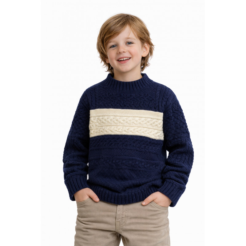Väri: Tumman sininen, luonnonvalkoinen leveä raita