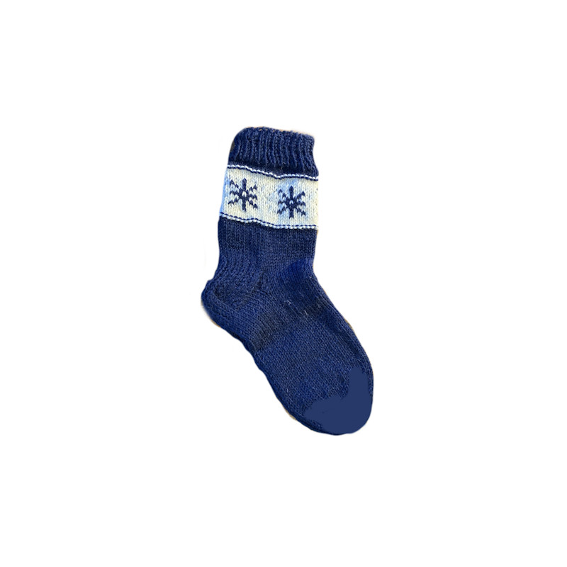Nämä upeat tummansiniset villasukat tuovat talven ja perinteen kauniisti yhteen. Varren vaalea paneeli ja neulottu lumihiutalekuvio tekevät sukista näyttävät mutta hillityt – täydelliset niin arkeen kuin lahjaksi. Pehmeä villa lämmittää luotettavasti ja hengittää, joten jalat pysyvät mukavan kuivina.